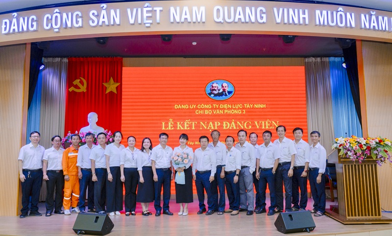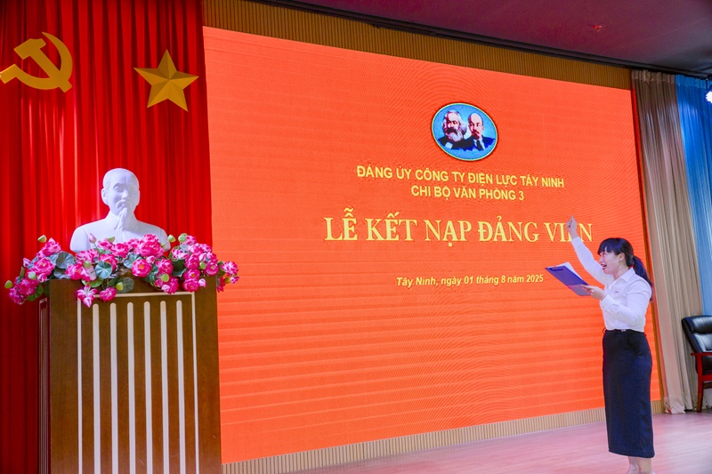 Ngày 01/8/2025, Chi bộ Văn phòng 3 tổ chức Lễ kết nạp Đảng viên cho quần chúng ưu tú Dương Thị Bé Lạc đang công tác tại Trung tâm Thí nghiệm điện Tây Ninh.
