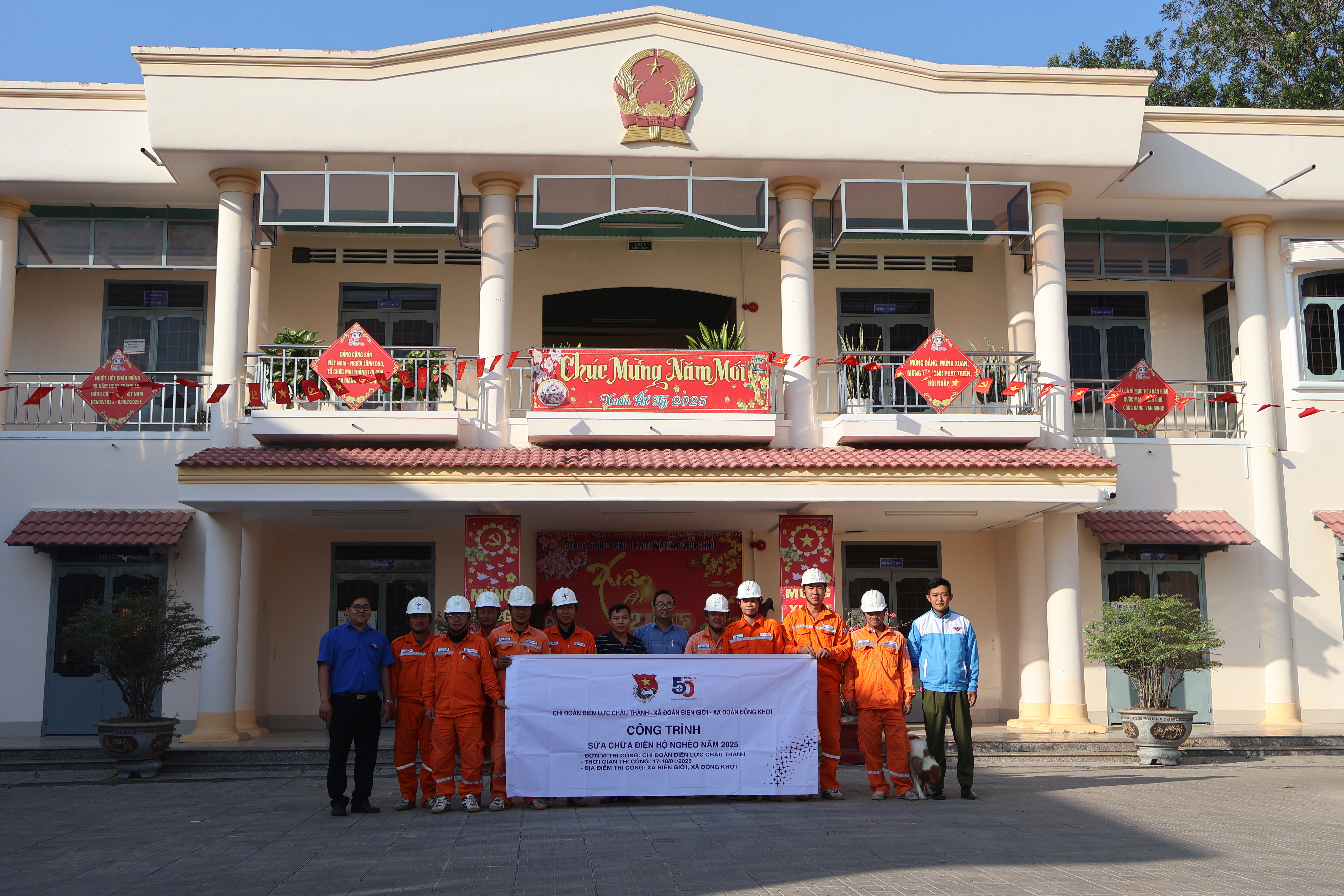 Ngày 21/12/2024, Chi đoàn Điện lực Châu Thành phối hợp với Xã đoàn Ninh Điền thi công sửa chữa đường dây đèn thắp sáng đường quê, vào tháng Tri ân Khách hàng 2024. Địa điểm thực hiện công trình tại tổ 11, 12 ấp Bến Cừ, xã Ninh Điền, huyện Châu Thành. Quy mô công trình với số lượng thay: 48 bóng, 04 cần đèn với tổng số tiền là 5 triệu đồng. Nội dung thực hiện: thay bóng, cần đèn, căng lại dây, bịt kín mối nối và phát quang