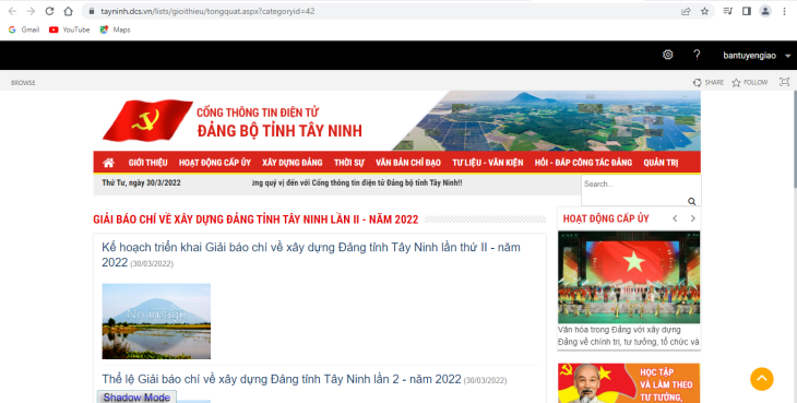 Hưởng ứng Giải báo chí toàn quốc về xây dựng Đảng (Giải Búa liềm vàng) lần thứ VII - năm 2022, ngày 25/3/2022 vừa qua, Ban Thường vụ Tỉnh uỷ đã ban hành Kế hoạch số 66-KH/TU triển khai Giải báo chí về xây dựng Đảng tỉnh Tây Ninh lần thứ II - năm 2022 và hưởng ứng Giải báo chí toàn quốc về xây dựng Đảng lần thứ VII - năm 2022 (Giải Búa liềm vàng)