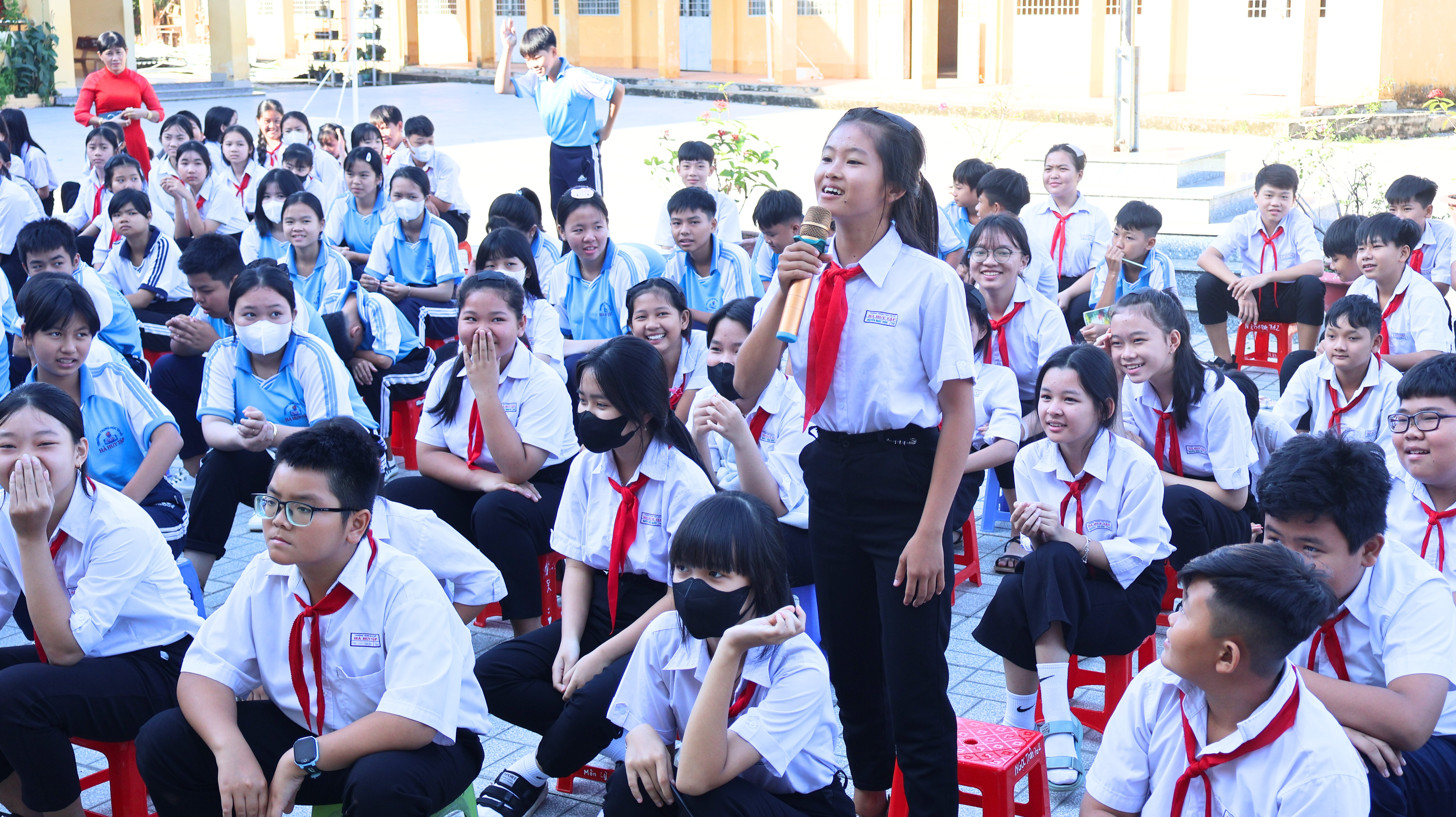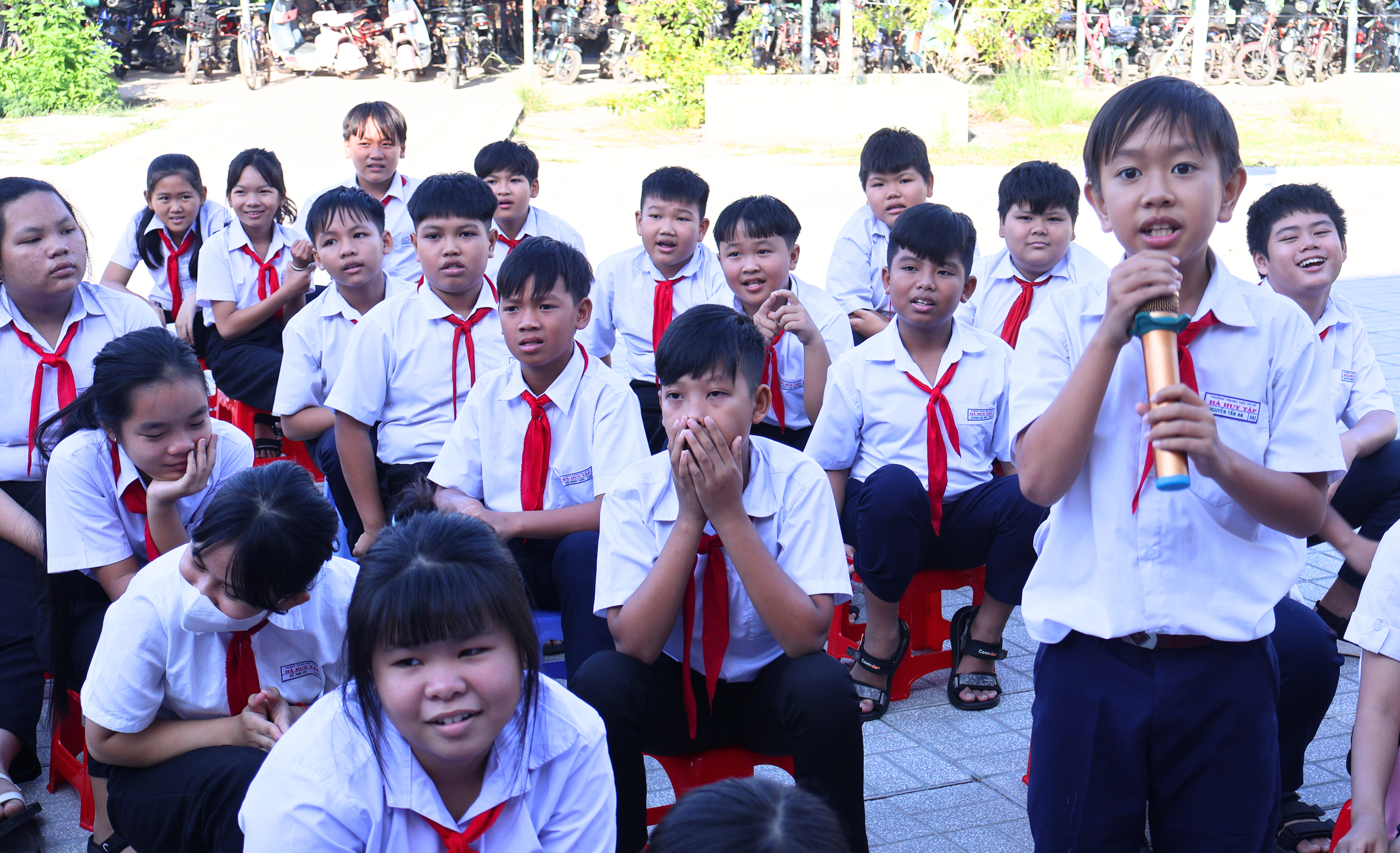 Không khí chương trình trở nên sôi nổi hơn với phần trò chơi hỏi – đáp kiến thức về tiết kiệm điện, thu hút sự tham gia nhiệt tình của các em học sinh. Mỗi phần quà gồm 01 balo, 01 bộ dụng cụ học tập, 10 quyển tập, với tổng cộng 25 phần quà (25 balo và 250 quyển tập) được trao tặng, góp phần khích lệ tinh thần học tập và ý thức tiết kiệm điện của các em.